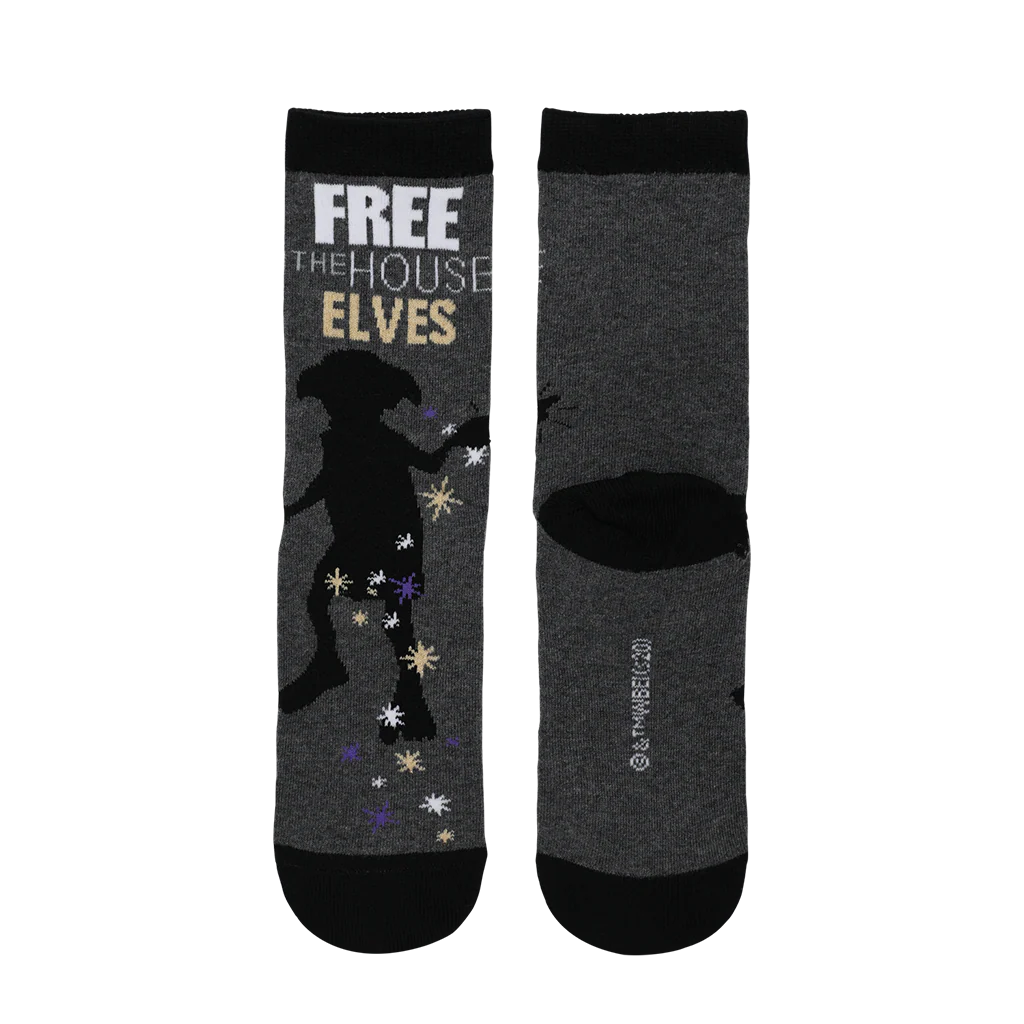 ドビーは自由な妖精だ。ドビーの大好物“くつした”で、自由な屋敷しもべ妖精を応援しよう。 この三足セットなら、『Free the Elves(しもべ妖精を解放せよ)』『Master has given Dobby a sock(ご主人様がドビーめに靴下を片方くださった)』『Free Dobby(ドビーに自由を)』の3種類の柄を楽しめます。