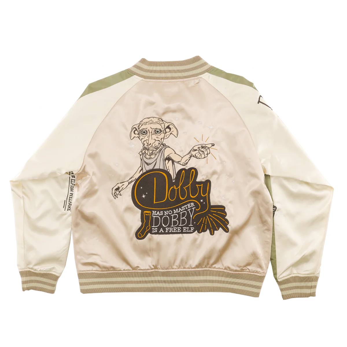 背面には、杖を掲げるドビーのアートワークと「DOBBY HAS NO MASTER. DOBBY IS A FREE ELF.」のメッセージ。