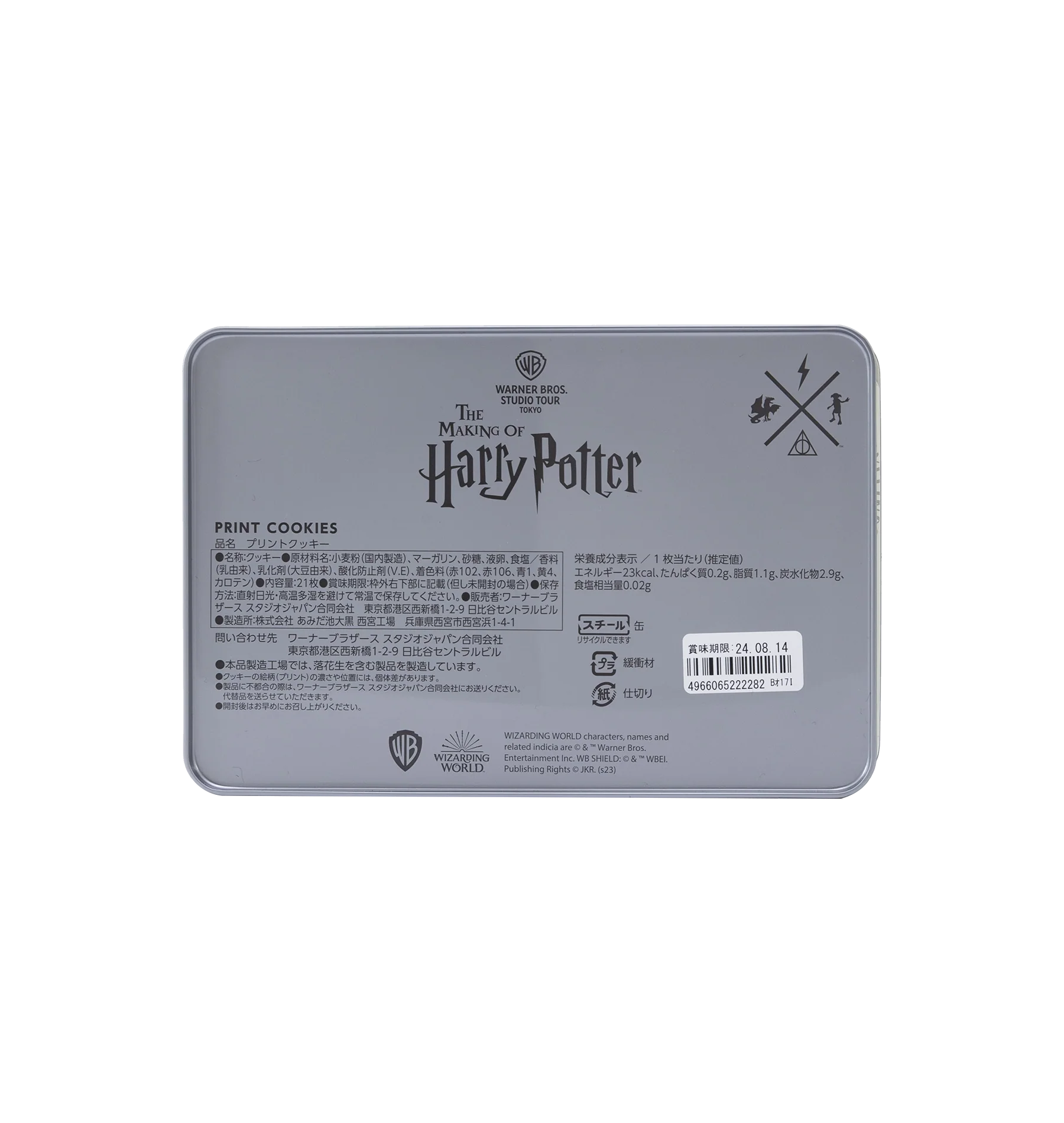 缶の中には映画「ハリー・ポッター」に登場するキャラクターがプリントされたクッキーが入っています。