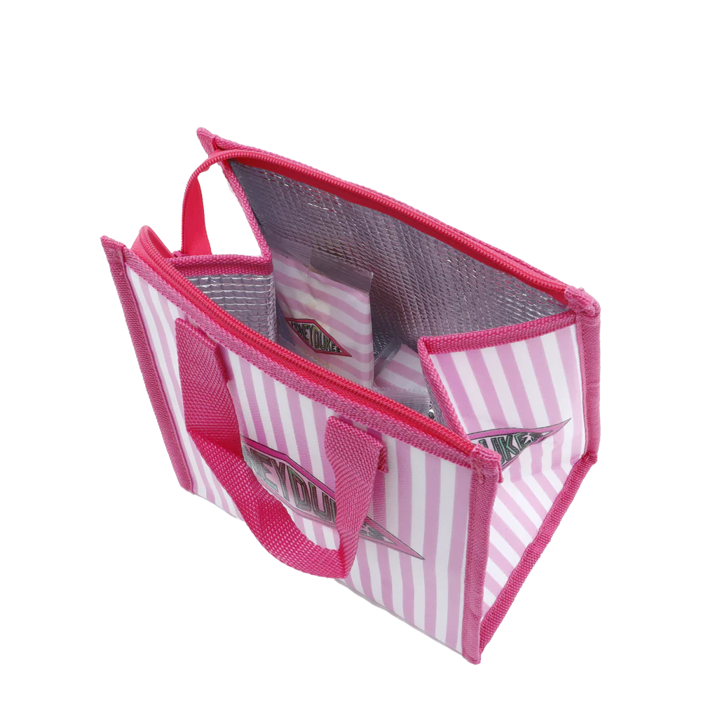内側が保冷仕様のミニバッグは、お菓子や小さなドリンク入れに便利。