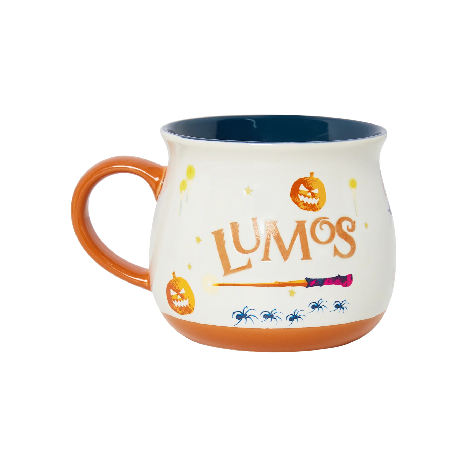 クリームカラーのセラミック製マグカップ(容量約450ml)は、「Lumos」「Expelliarmus」「Accio」などおなじみの呪文と、魔法界をイメージしたハロウィーンモチーフを全面にプリント。