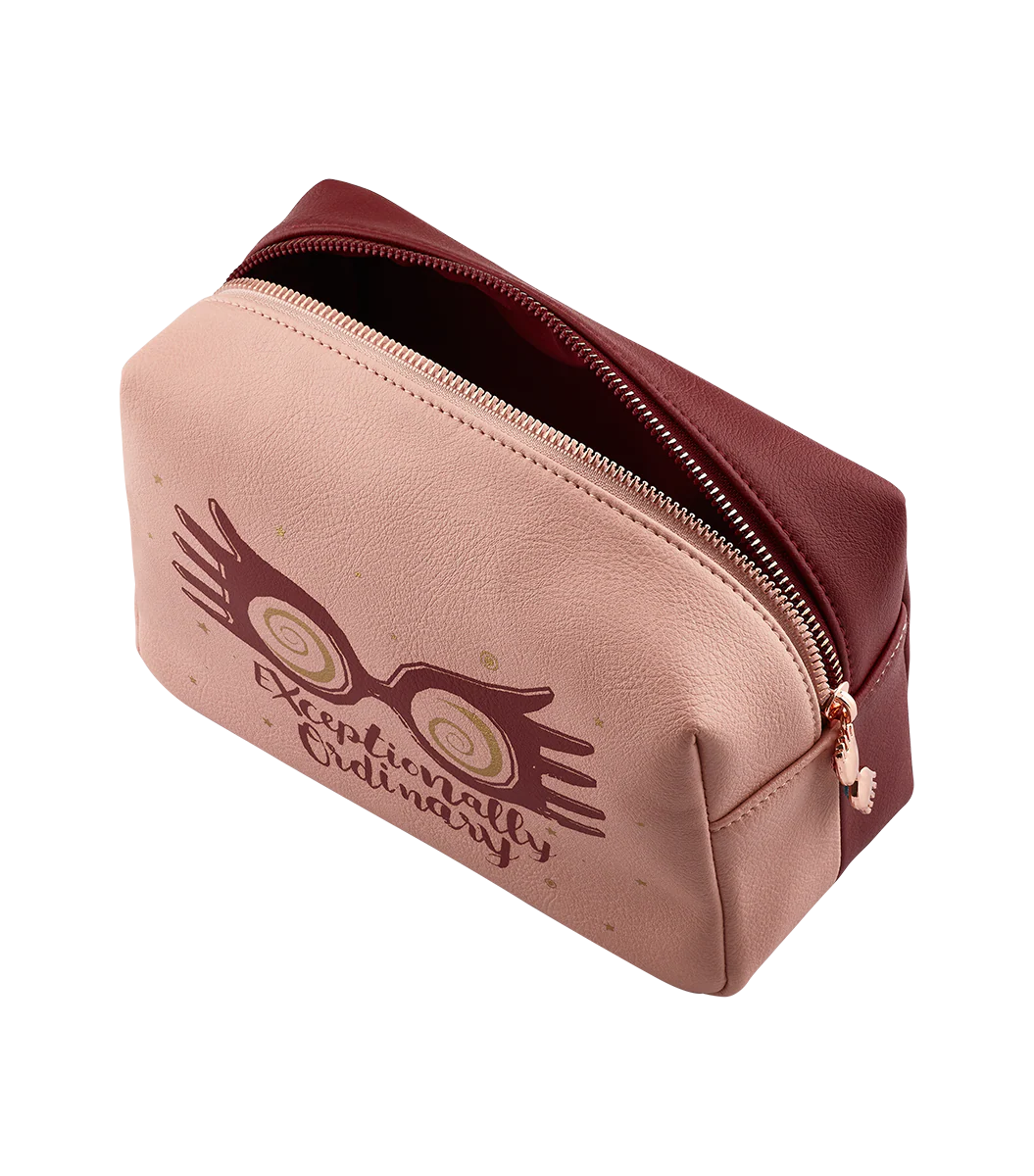 ルーナ・ラブグッドの奇抜なファッションセンスにヒントを得たコスメポーチです。ライトピンク色の面にはルーナのトレードマークであるメラメラメガネと、ルーナの名セリフ「Exceptionally Ordinary(すごく普通)」がデザインされています。 マルーンカラーの面にはルーナ・ラブグッドの名前がエンボス加工であしらわれ、「The Harry Pottere shop」のローズゴールドのタグもついています。またブルーとピンクの宝石がついたローズゴールドのメラメラメガネがファスナーについています。ゴージャスなPVC製コスメポーチはポリエステル100%の裏地になっており、ビューティーグッズを入れるのにピッタリです。ルーナ・ラブグッドの風変わりなリュックサックも合わせてどうぞ。