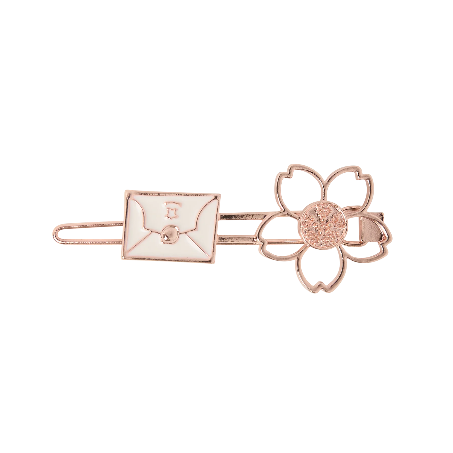 ピンクメタリックの金属パーツで仕上げられたヘアピンは、スライド式の仕組みを採用。魔法のモチーフ部分がサクラの花に向かって滑るように動き、髪を留めるたびに小さな魔法の演出を楽しめます。見た目の可愛らしさだけでなく、スタイリングの時間そのものを特別なひとときに変えてくれるデザインです。