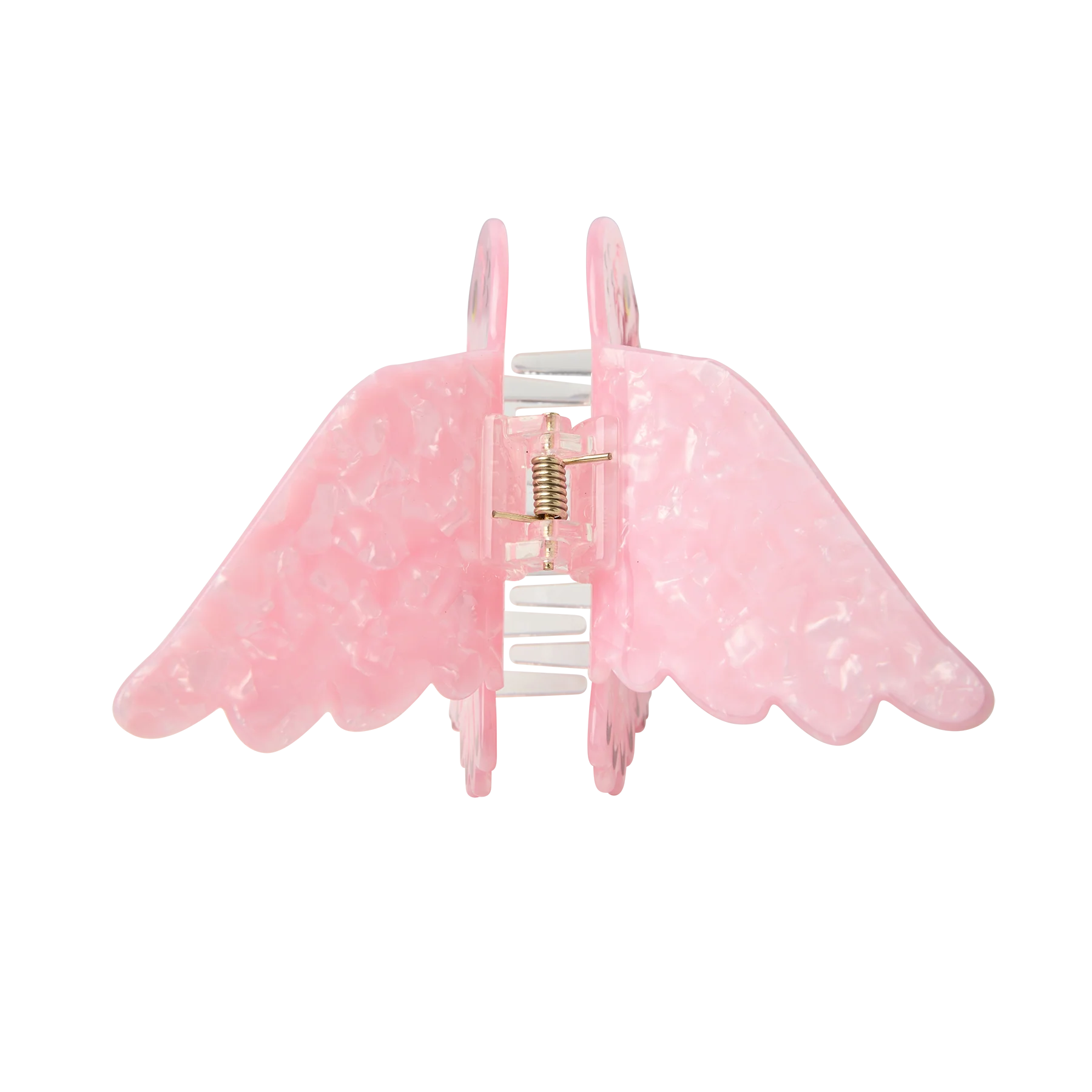 なめらかなアセテート素材に、パールのような艶をプラス。羽を大きく広げて空を舞うフクロウの姿は、やさしい光を受けてほのかに輝きます。ローズカラーのグリッターが散りばめられ、動くたびに小さな魔法のきらめきを感じさせます。